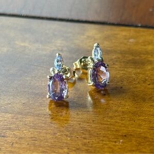 10K Gold Purple Amethyst Blue Aquamarine Stud Earrings