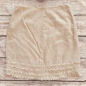 Tommy Bahama Tan Beige Linen Lined Skirt with Fringe Ladies Sz 6