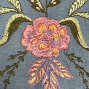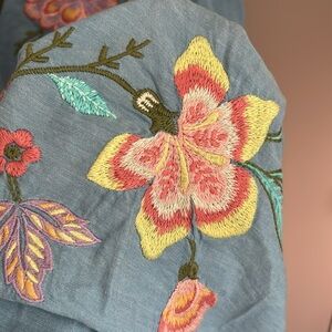 Johnny Was Camellia Midi Dress Cotton Blue Embroidered Size Small