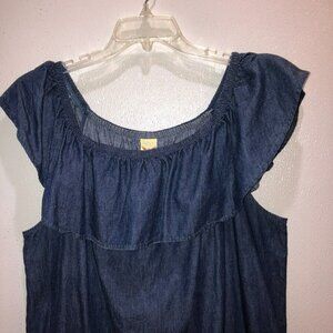 Faded Glory Womens XXL Blue Chambray Off the Shoulder Ruffle Denim Jean Dress