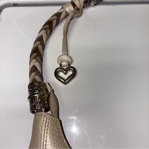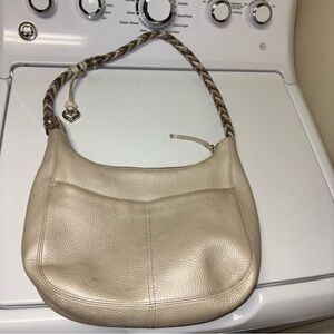 This hobo’s classic simplicity, Zinc Pearl leather & woven strap are eye catching.
