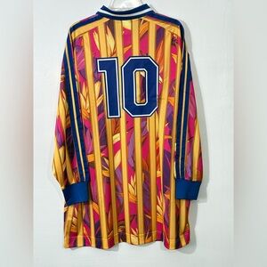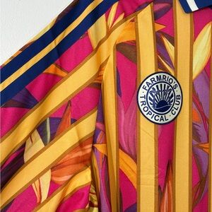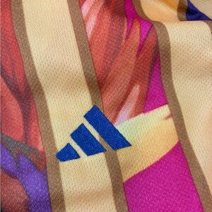 New with tags adidas x FARM Rio Polo Jersey Dress in the bold “Stripes of Paradise” print, size XL. This standout sporty dress blends retro football jersey energy with vibrant tropical graphics for a true blokecore meets streetwear look. Designed with a relaxed oversized fit, classic polo collar, long sleeves with athletic stripe detailing, and breathable jersey fabric that feels lightweight yet structured. The colorful vertical stripes and floral pattern bring signature FARM Rio vibrance to adidas sport heritage, making it perfect for styling with sneakers, boots, or layered for an editorial athleisure vibe. A rare and eye-catching piece that works for festivals, street style, travel, or everyday statement wear. Authentic, brand new, never worn, with original tags attached.