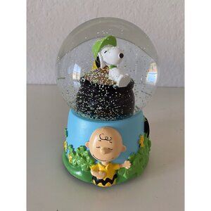 Peanuts Snoopy Woodstock Charlie Brown Musical Snow Globe St Patricks Day No Tag