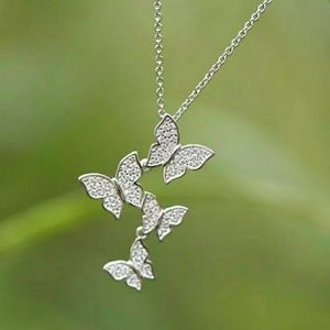 AAA cubic zirconia stones beautifully set in sterling silver butterflies on a 17 inch long S925 silver chain. Butterfly pendant measures 1.5 inches long x .5 inches at its widest point and features 4 butterflies. Includes jewelry box ready for gifting!