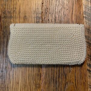 Vintage 50's 60's White Beaded Clutch Evening Bag Pearl Embellished Handbag Y2K
