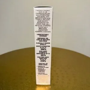 Elegant gold and white packaging. Boosts radiance and offers lasting coverage.