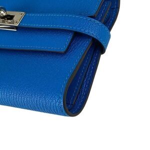 Used HERMES Kelly Deprien Medium Wallet in Blue Chevre, a women's tri-fold long wallet. (SKU: GZl1f89c)