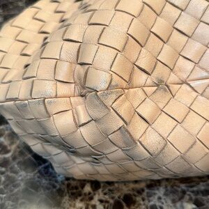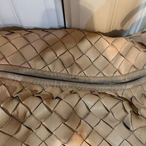 Discover the perfect blend of style and functionality with this elegant authentic Bottega Veneta Jodie tan woven bag. Ideal for any occasion, this bag adds a touch of sophistication to your outfit. This bag was well used and does have some scuffs and worn spots that aren’t really very noticeable when carrying. The inside of the bag and the inside zipper pocket have some pen marks. Size is 11 inches up and down and 18.5 inches side to side.Beautiful bag that I hesitated giving up but it was time! Comes with original dust bag. Please feel free to make an offer. I am willing to consider all offers but please no low ball offers. Thanks!
