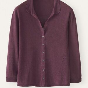 Soft, understated knit cardigan by Poetry in a rich plum hue. Designed with a relaxed silhouette, button-front closure, and subtle collar for an elevated take on a classic layering piece.