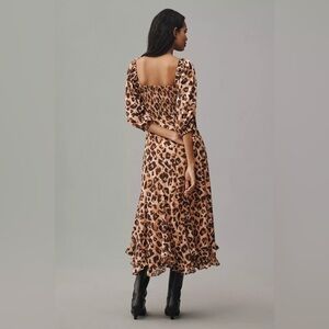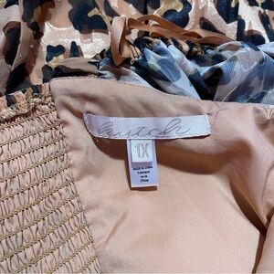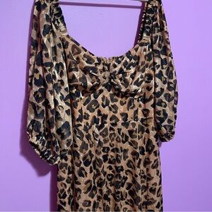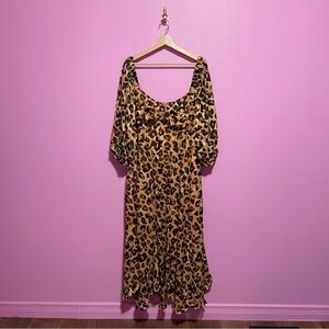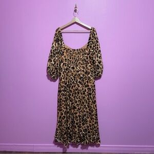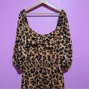 Hutch Dress Women's Size 1X Leopard Print Twist-Front Puff-Sleeve Ruffle-Hem