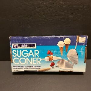 Vintage Vitantonio Sugar Coner (Model No. 530) — a classic retro kitchen gadget for making homemade sugar ice cream cones. Comes with the original box and plastic cone mold. Perfect for collectors, vintage kitchen lovers, or fun functional use.
