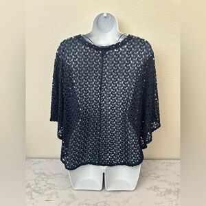 Style & Co Womens Top Blue Scoop Neck Peasant Blouse Sz XXL Crochet Sheer