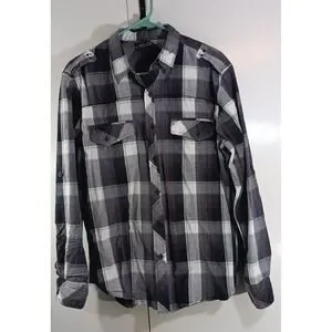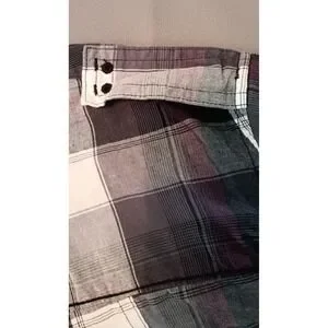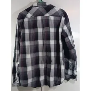 The Helix Button Up Shirt for men in size Large is a stylish and versatile addition to any wardrobe. This purple long sleeve shirt features a classic plaid pattern with a collared neckline and button closure. Made from a comfortable cotton blend, this lightweight shirt is perfect for casual or business occasions year-round. The vintage-inspired grunge and 90s theme adds a unique touch to this classic button-up, making it a must-have for those who love Western and casual styles.