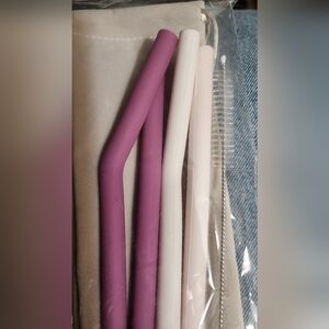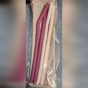 4 NEW Silicone Straws plus straw cleaning brush & soft drawstring storage bag.