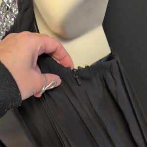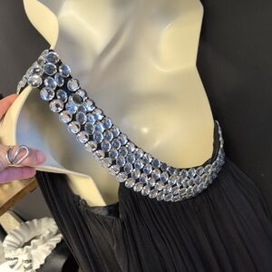 Chic black dress by Scala. Features eye-catching silver accents. Ideal for elegant events.
