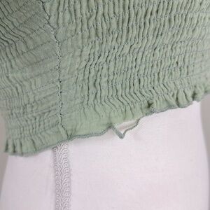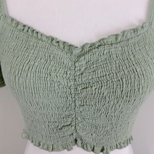 Altar’d State Women’s Cropped Ruched Puff Sleeve Top | Light Green | Size Large