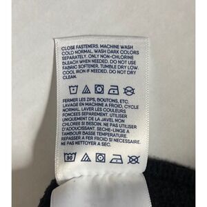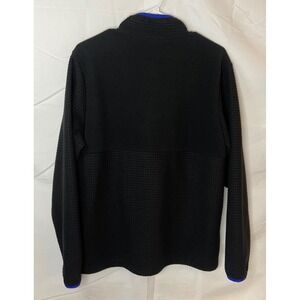 Lands End Black Fleece Jacket Mens Size Medium Zip Up Blue Trim Textured