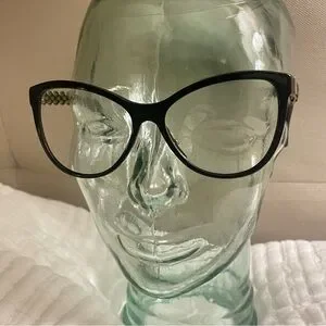 CHANEL Women's Glasses with Black Frame and Gold Detailing