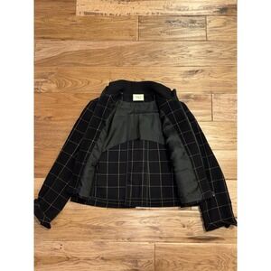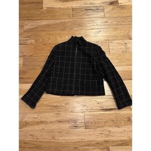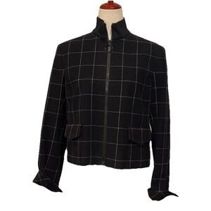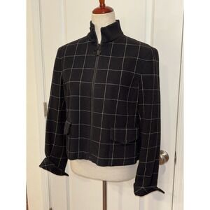 AKRIS Punto Black Windowpane 100% Wool Zip Jacket Women's US 10