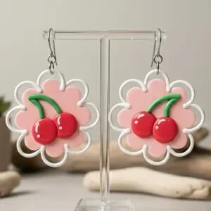Sweeten your style with these whimsical strawberry sakura dangles! šøš These aren't your average floral earringsāthey feature a unique layered design with a crisp white flower-shaped outline over a soft pink floral base. Topped off with a tiny, detailed 3D strawberry charm in the center, they are the perfect mix of "cottagecore" and "kawaii" aesthetics.