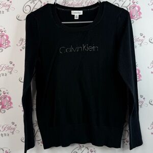 Calvin Klein sweater studded rhinestone logo detail Classic Black Pullover