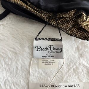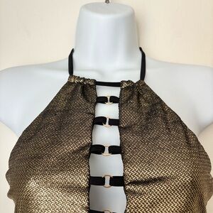 Beach Bunny Pirates Booty High Neck Halter Swim Top Size Large NEW Gold Black