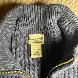 Classic L.L. Bean full-zip ribbed knit sweater in a versatile navy blue.