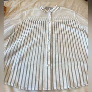 * Striped buttondown w/ sheer swiss dot detailing and wide sleeves