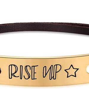 Features: Chic leather bracelet with a sleek dark brown strap etched with the inspiring "rise up" message. The lobster claw clasp keeps it secure, and the slide knot allows for easy size adjustment—perfect for adults and friends alike.