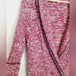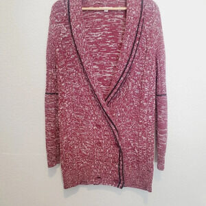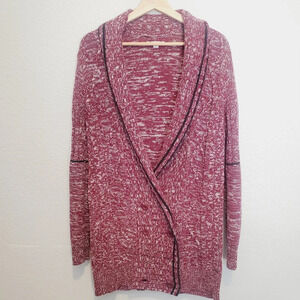 Volcom Nord It Up Long Heathered Cable Knit Cardigan Sweater Burgundy Medium