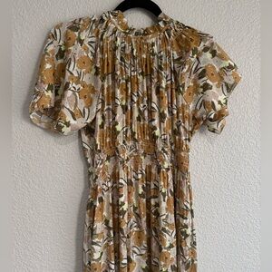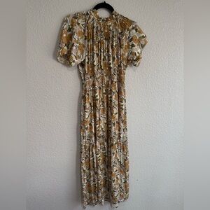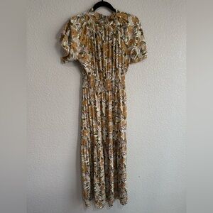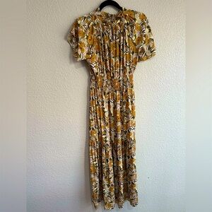 Embrace elegance with this stunning floral dress. Featuring a beautiful yellow and white pattern, it's perfect for any occasion. Enjoy the comfort and style this dress brings to your wardrobe.