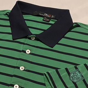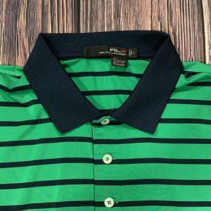 Ralph Lauren RLX Mens Golf Polo Shirt Green Blue Striped Button Collar Large