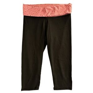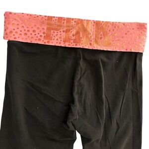 Victoria's Secret PINK Capri Leggings M Black Pink Bubble Roll Over Waistband