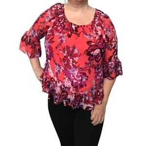 Lucky Floral Ruffle Blouse Valentine's Day S-Medium- perfect for Valentine's Day