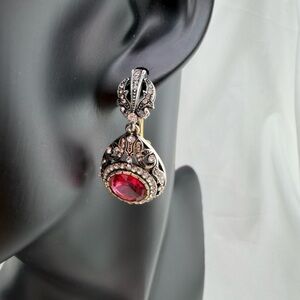 Vintage-Inspired Silver and Red Drop Earrings