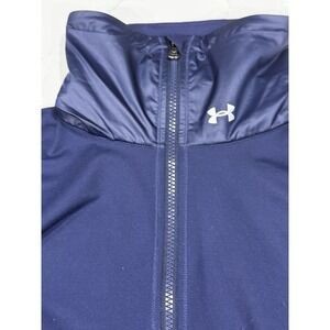 Under Armour Warm Up Track Jacket Womens Small Blue Full Zip Fitted Stretch