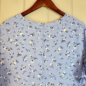 CeCe Womens Blue White Floral pleated Ruffle sleeve Summer Mini Dress size Small