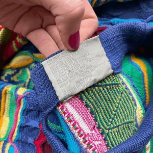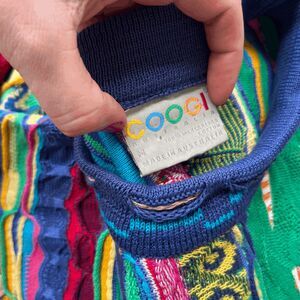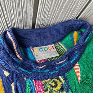 Coogi sweater, 3D knit, mercerised cotton, Australia made, hip hop style, 90s fashion, Biggie Smalls, maximalist knit, colorful sweater, collectible Coogi, statement knit, vintage streetwear, textured knit, designer knitwear, bold multicolor