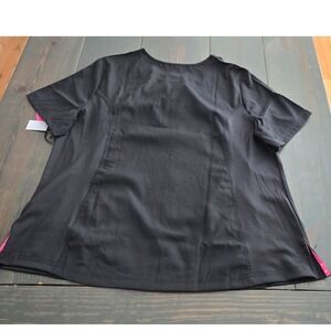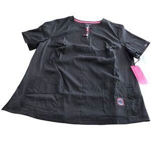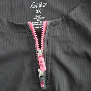 Koi Lite Womens 3X Black Dobby Rib Slim Fit Scrub Top Zip Neck Pockets