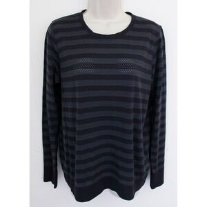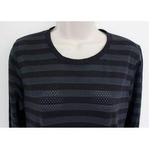 Lululemon Top Womens 12 ? Black Stripe Breeze By Long Sleeve Perforated Pullover