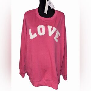 🆕💜 Workshop Republic LOVE Pink Graphic Sweatshirt Cozy Stretch Knit Women’s 2X