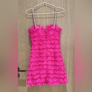 New with tags. Turn heads with this stunning pink dress featuring elegant embellished straps. Perfect for any special occasion.