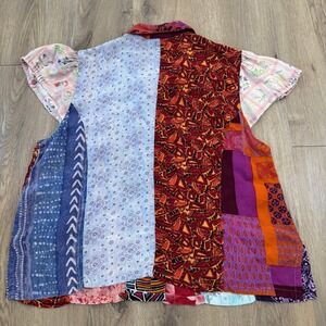 Vintage Sacred Threads Patchwork Boho Hippie Short Sleeve Collared Shirt Large