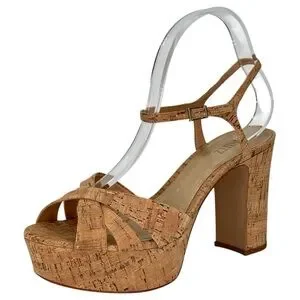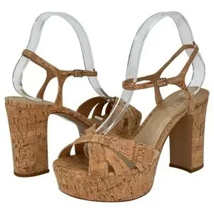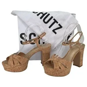 Schutz Keefa Tan Cork Womens Platform Heels Size 9.5M
