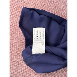 Keywords: Stile Benetton, Navy Blouse, Long Sleeve Top, Mock Neck Blouse, Button Detail, Womens Blouse, Office Wear, Career Wear, Elegant Top, Dressy Blouse, Gold Buttons, Contemporary Blouse, Fashion Blouse