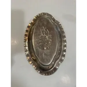 Nasco Italian Pewter Oval Scalloped Edge Trinket Dish Floral Embossed Vintage