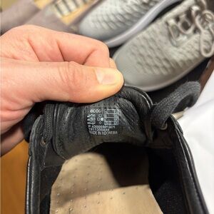 Experience the perfect blend of style and comfort with these Ecco sneakers, featuring a smooth black leather upper and contrasting white sole. The low-top design and traditional lacing offer a classic look, making them ideal for everyday wear.