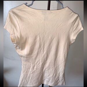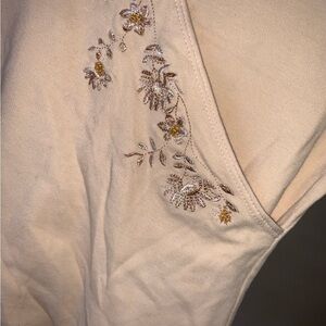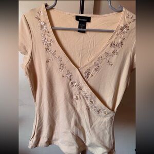 Chic ivory top with floral embellishments. Express Women’s V-Neck Floral Bead Embroidered Top.