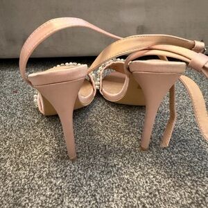 Chic pink heels with stunning pearl embellishments. Perfect for elegant occasions.
