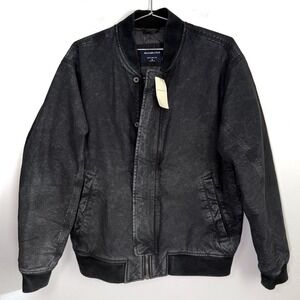 NWT Abercrombie & Fitch Mens Black Washed Bomber Jacket Size Medium